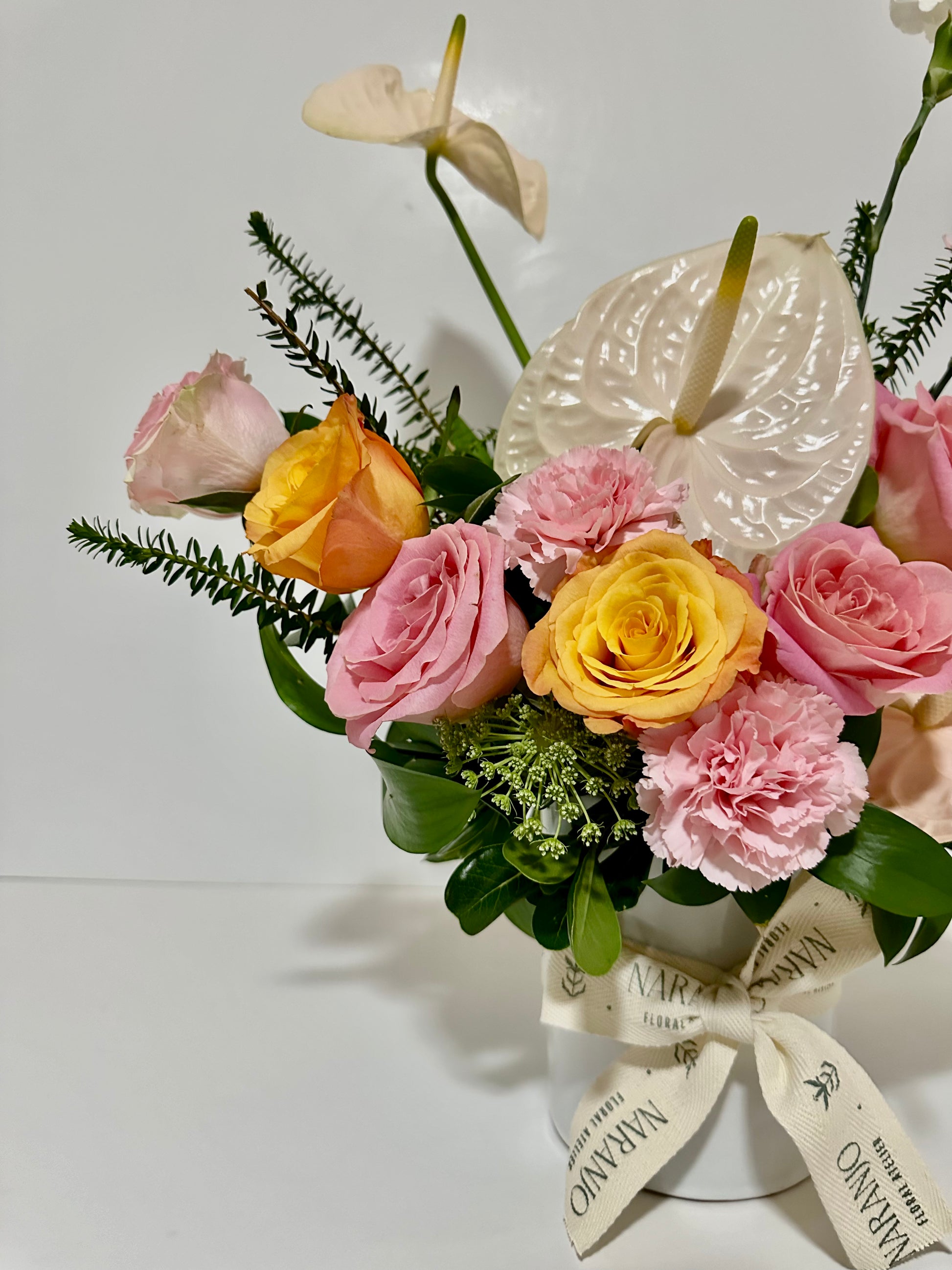 Cada obra es única y hecha a la medida. Por lo tanto, los tonos y tipo de flor pueden variar dependiendo de la disponibilidad y la temporada.