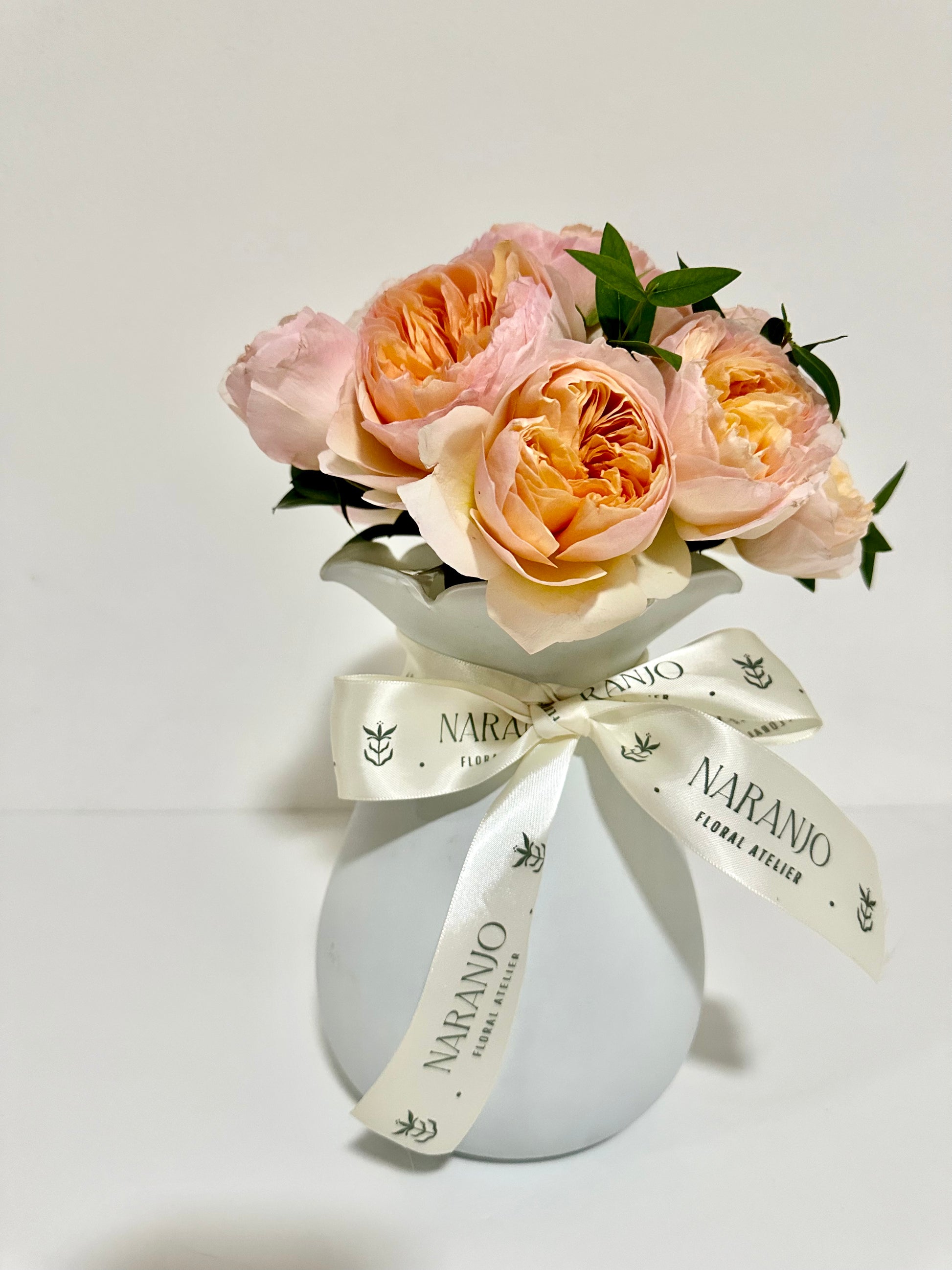 Cada obra es única y hecha a la medida. Por lo tanto, los tonos y tipo de flor pueden variar dependiendo de la disponibilidad y la temporada.